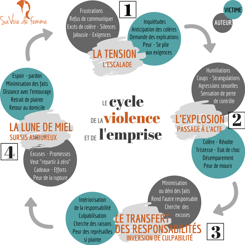 Il vous faut comprendre que les violences subies, l’emprise, le cycle des violences, les psychos traumatismes, la stratégie de l’auteur… altèrent considérablement le comportement de la victime et la dévalorise.